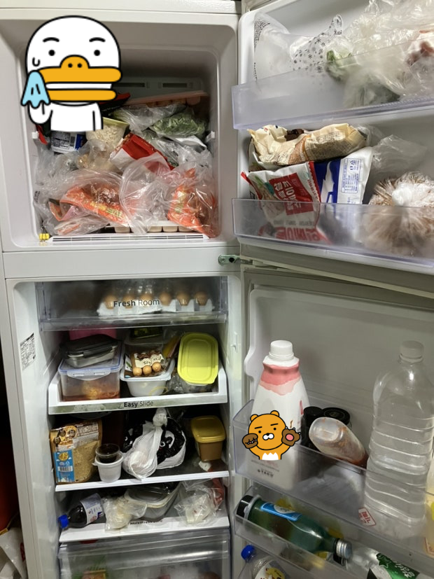 중간에 쌓인 식재료를 정리하고, 앞으로 꺼내지 않은 식품을 다시 눈에 띄는 곳에 재배치합니다. 안 먹던 재료로 간단한 볶음밥, 전 등 1인 요리를 하는 것도 좋습니다.