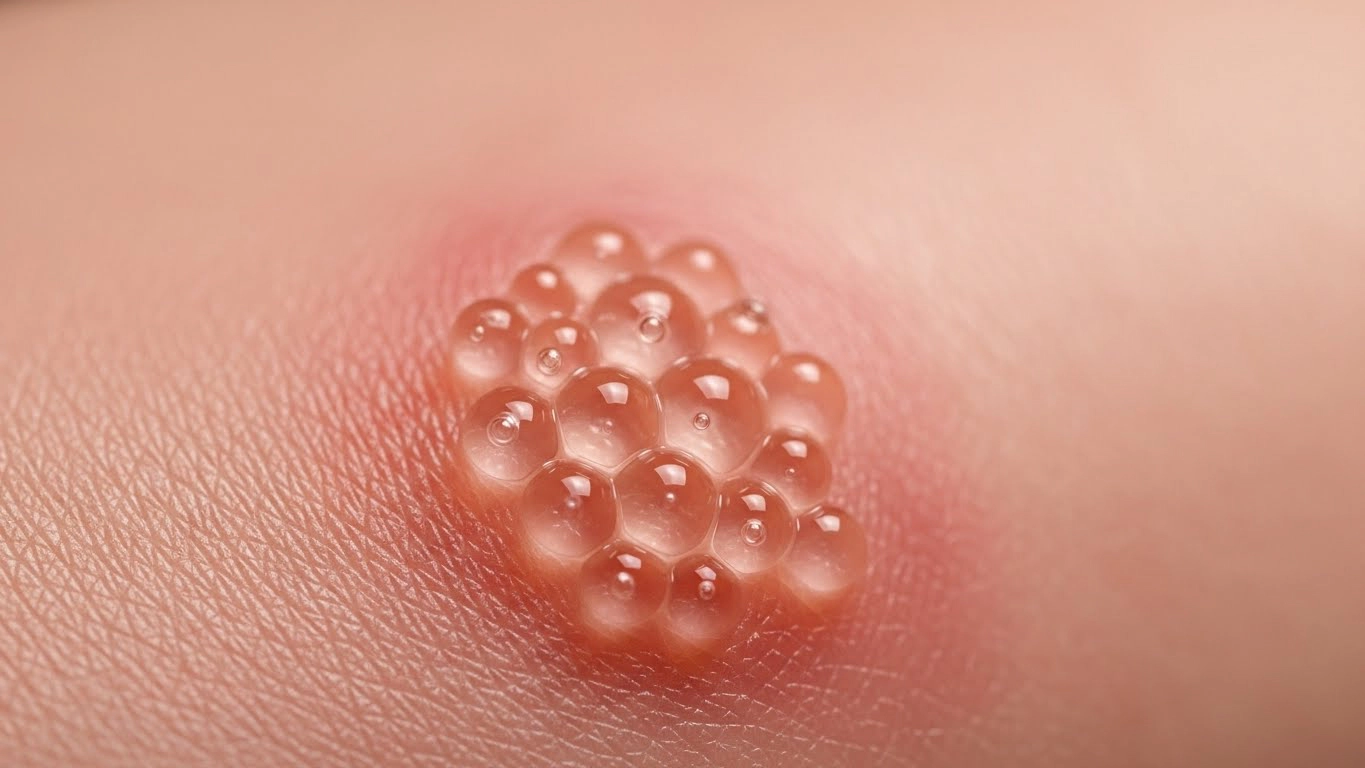 • 그 위로: 물집(수포)이 군집 형태로 나타남