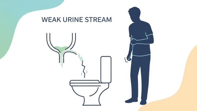 • 소변 줄기가 약해지고, 중간에 끊기거나(‘stop-start’) 힘을 줘야 나오는 느낌이 생길 수 있어요.