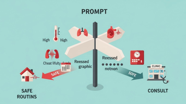 • 고열 지속, 호흡곤란, 흉통, 반복 감염, 원인 불명 체중 감소 등은 원인 확인을 위한 진료가 우선일 수 있습니다.