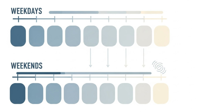 • 같은 7시간이라도, 매일 들쑥날쑥하면 피로가 누적되기 쉽습니다.