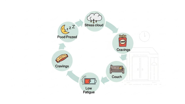 “요즘 자꾸 아프다”는 분들 중 상당수가 스트레스 → 수면 붕괴 → 당/카페인 증가 → 야식으로 이어지는 패턴을 갖고 있습니다. 이럴 때는 의지로 버티기보다 끊는 순서가 중요합니다.