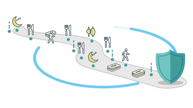 • 핵심은 6가지입니다: 수면, 단백질·채소 중심 식사, 걷기, 스트레스 관리, 위생, 예방접종.