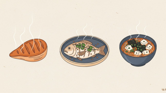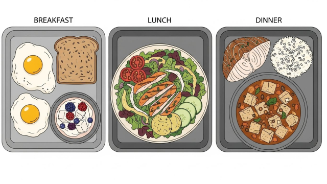 또 한 끼에 몰아먹는 방식은 배가 부르거나 속이 불편해서 오래 못 갑니다. 가장 현실적인 방법은 아침/점심/저녁마다 단백질 반찬이 ‘한 칸’ 들어가게 만드는 것입니다.