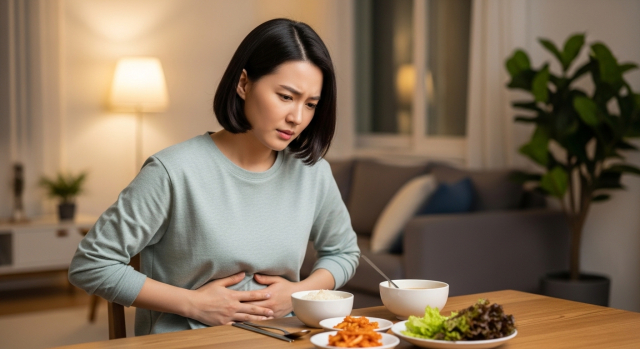 1. 식후 더부룩함, 잦은 과식, 식사 속도, 야식 습관이 있는지 먼저 점검해보세요.