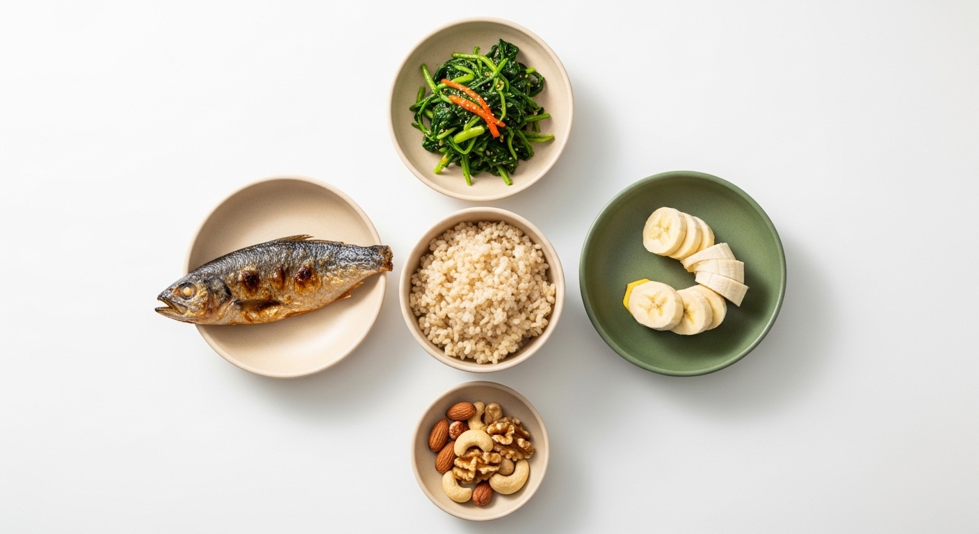 - 특히 좋은 식품: 바나나, 시금치, 고구마, 견과류 (칼륨 풍부)