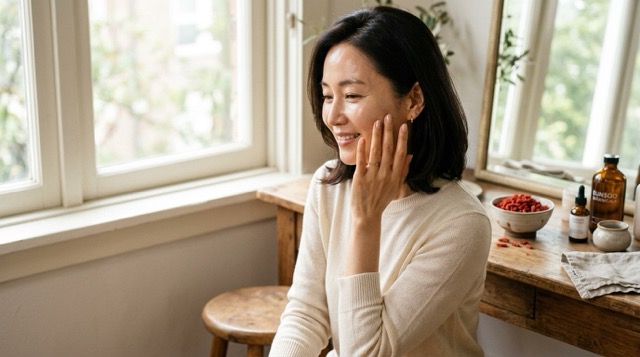 또한 구기자의 제아잔틴과 베타카로틴은 자외선에 의한 피부 산화 손상을 내부에서 방어하는 일종의 '내복 선크림' 역할을 합니다. 실제로 카로티노이드가 풍부한 식단을 유지할 경우 피부색이 건강하게 개선되고 잔주름이 감소한다는 연구 결과가 복수의 피부과학 저널에 발표된 바 있습니다. 특히 피부 노화가 빠르게 진행되는 40~50대 여성에게 구기자의 복합 항산화 효과는 더욱 의미있게 작용합니다.