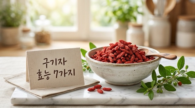 국내외 임상 연구와 한의학 문헌을 바탕으로 구기자의 대표 효능 7가지를 정리했습니다. 각 효능은 아래 상세 편에서 성분·기전·연구 근거와 함께 더 깊이 다룹니다.
