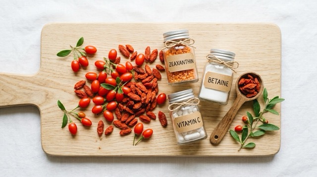 제아잔틴·루테인·베타인·베타카로틴·비타민C·폴리사카라이드(LBP)·필수 아미노산 18종
