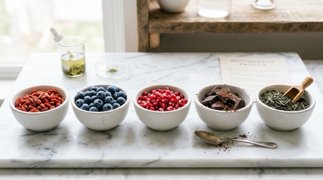 특히 베타카로틴은 체내에서 비타민A로 전환되어 피부 세포 재생과 면역 점막 보호에 중요한 역할을 하며, 구기자 폴리사카라이드(LBP)는 SOD(슈퍼옥사이드 디스뮤타아제)와 같은 내인성 항산화 효소의 활성도를 높인다는 연구 결과도 있습니다. 중국 전통 의학에서 구기자가 '자양강장(滋養强壯)'의 본초로 꼽혀 온 것도 이런 강력한 항산화 작용 덕분입니다.
