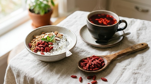 피부 관리 목적으로 구기자를 활용할 때는 외용(팩·화장품)보다 내복을 통한 꾸준한 섭취가 더 효과적입니다. 구기자를 스무디에 넣거나 요거트에 토핑으로 올리는 습관은 간편하면서도 피부에 긍정적인 영향을 주는 좋은 루틴이 될 수 있습니다.