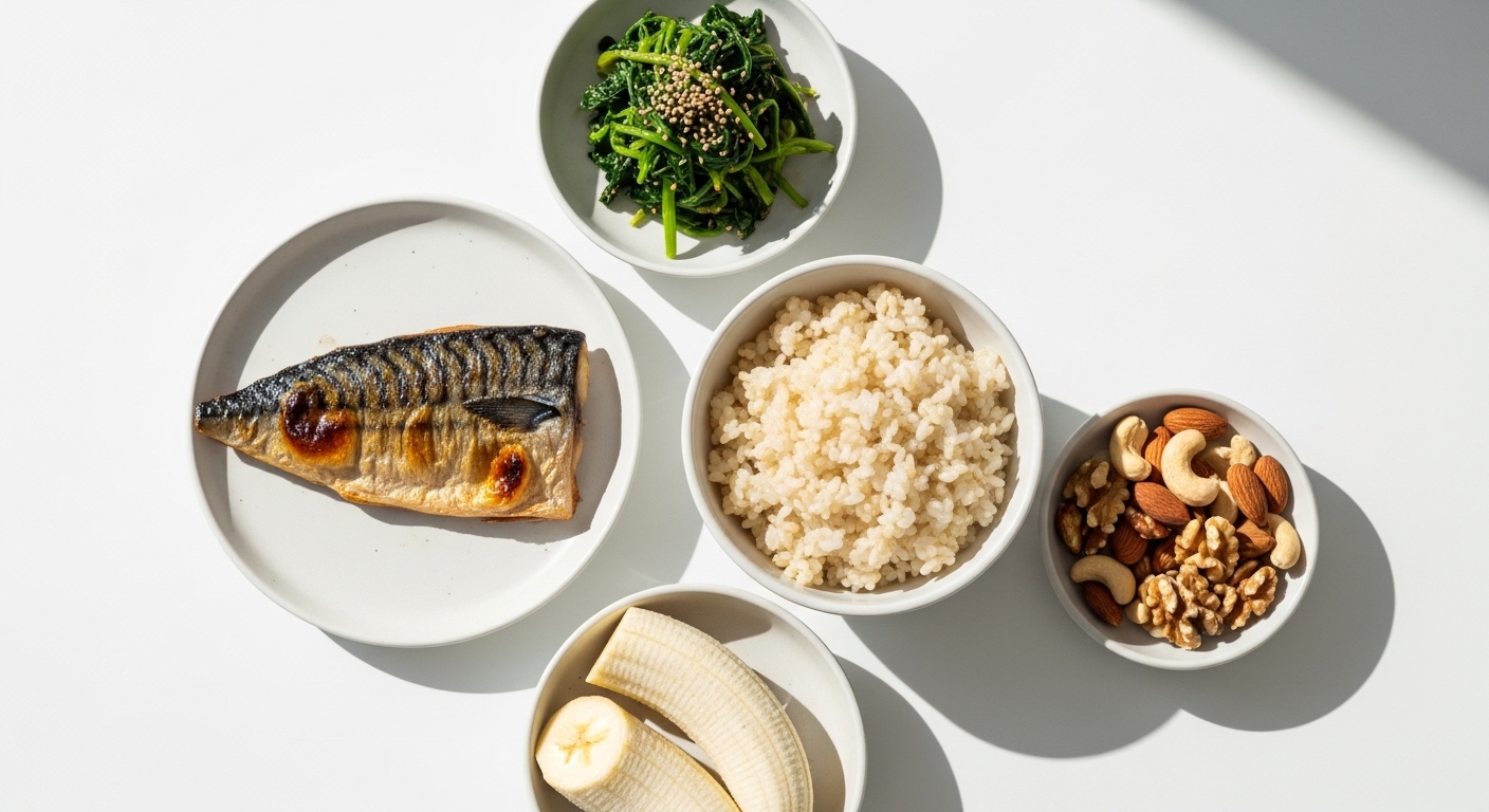 • 바나나·시금치·고구마·견과류 등 칼륨이 풍부한 식품이 특히 좋아요.