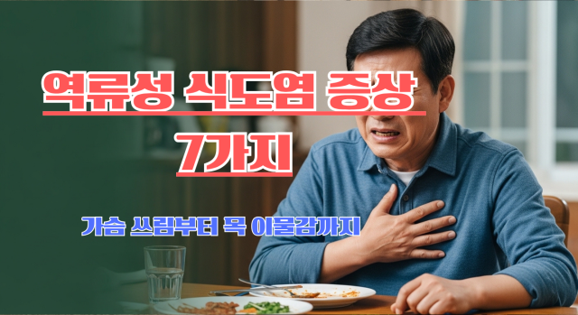 💡 이 글의 핵심: 역류성 식도염은 위산이 식도로 역류해 생기는 만성 질환으로, 가슴 쓰림·신물·목 이물감·만성 기침 등 7가지 증상을 조기에 알고 생활습관을 교정하면 충분히 개선할 수 있습니다.