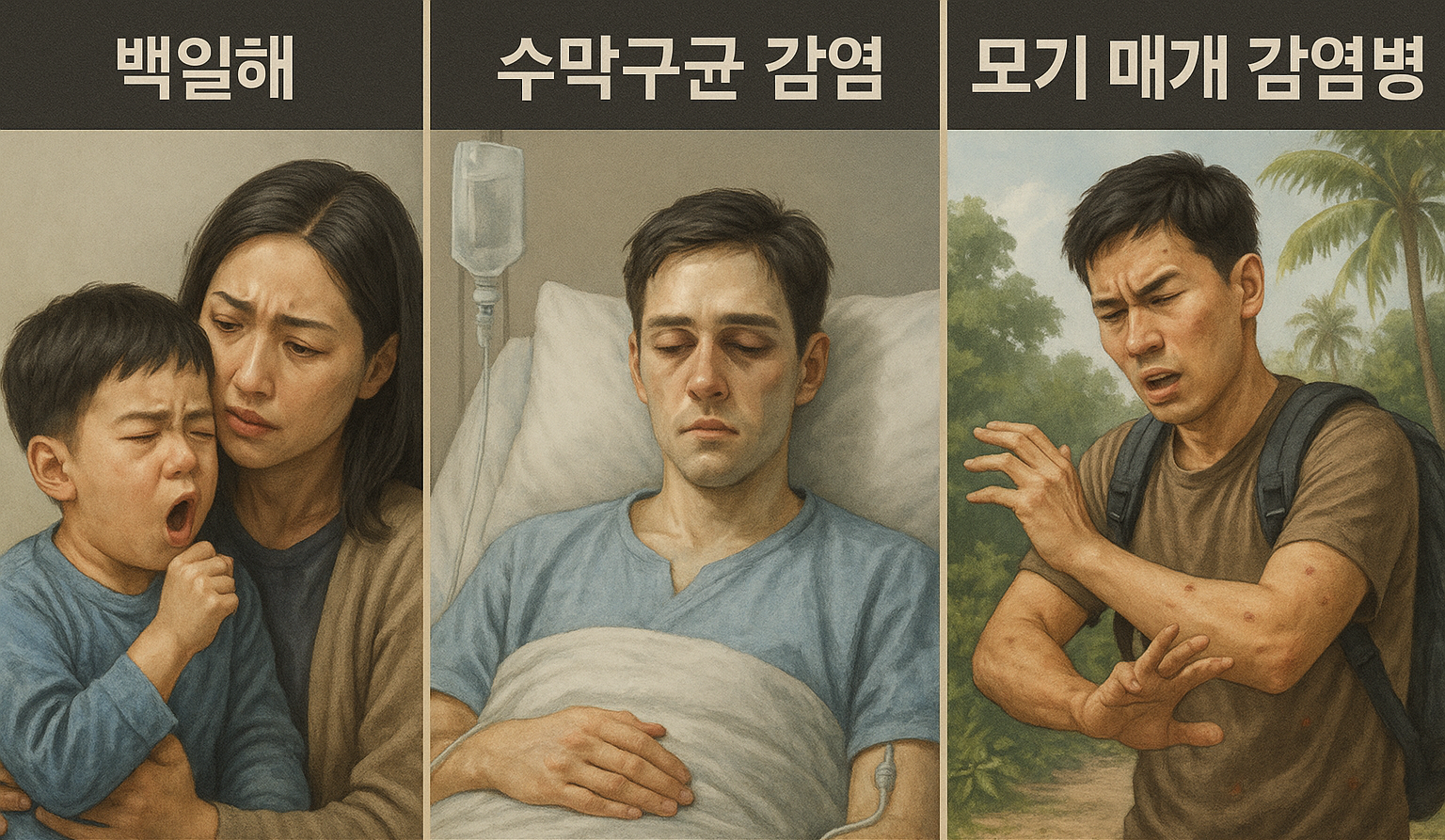 2025년 여름 휴가철이 다가오며 일본, 동남아, 미국 등 다양한 지역으로의 여행 수요가 증가하고 있습니다. 그러나 동시에 백일해, 수막구균 감염증, 뎅기열 등 다양한 감염병이 동시에 유행하면서 여행객의 건강을 위협하고 있습니다.